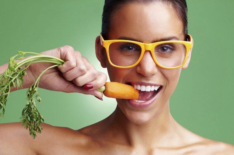 Морковь. Бета-каротин, находящийся в моркови, замедляет процесс старения белковой оболочки глазного яблока и мышц, управляющих зрачком, который является «оптическим прицелом» глаза человека.
