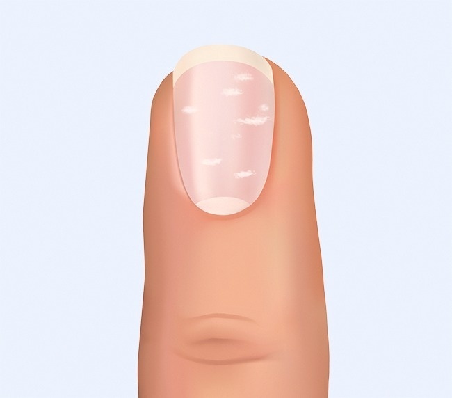 Белые пятнышки на ногтях – часто бывают при железодефицитной анемии, поэтому рекомендуется сдать кровь на общий анализ.
