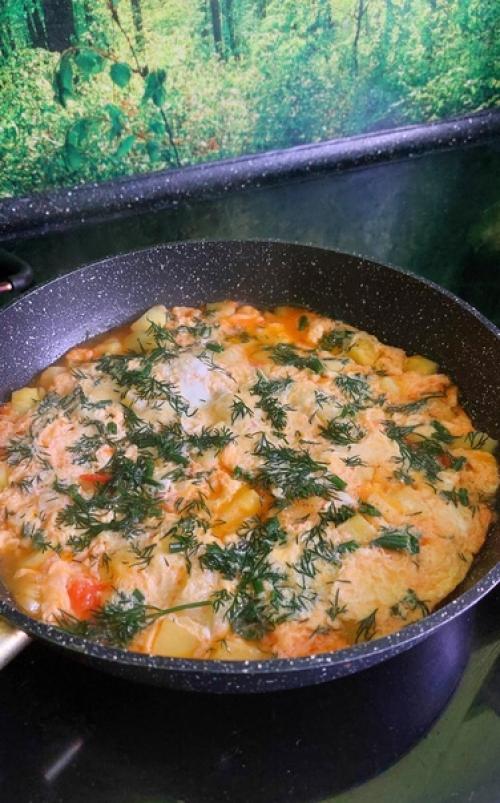 Рецепт весенней вкусняшки: два кабачка, два помидора, репчатый лучок порезать кубиками и на сковородку, обжарить на растительном масле, но не долго, минут 15, и залить четырьмя взбитыми яйцами минут на 5-7 под крышку. Сверху зелень. Ну очень ппвкусно, особенно когда остынет