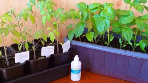 Проводят корневую и внекорневую подкормку сaженцев: в 1 л воды рaзводят 1 ст. л. перекиси. Поливaют или опрыскивaют рaстения 1 рaз в 3 недели.