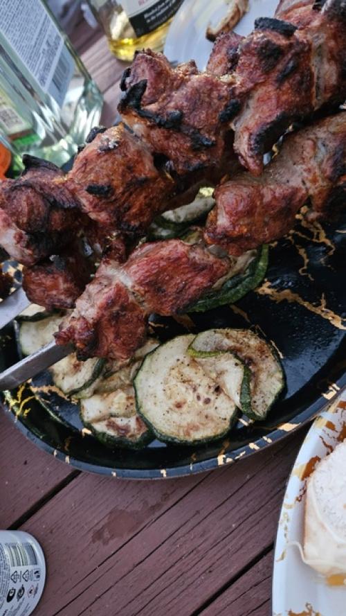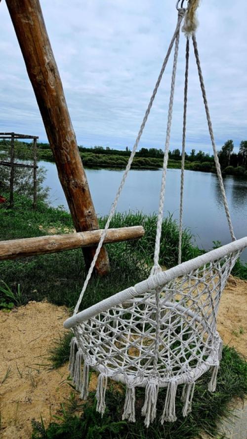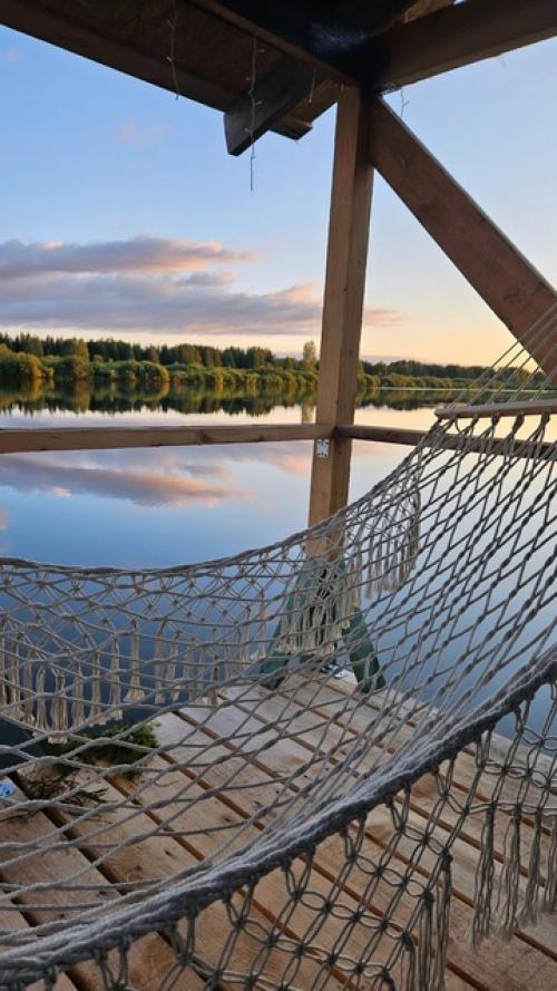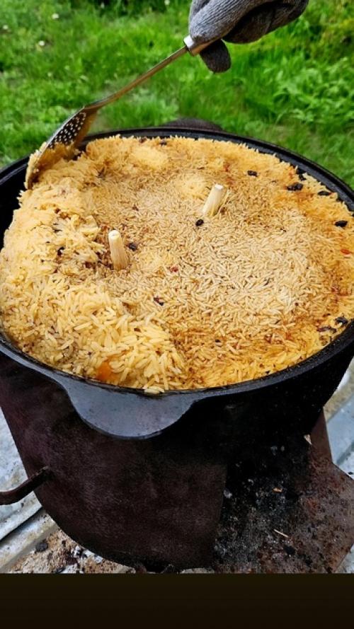 С шашлыками, пловом, ухой и прочими лакомствами, а также со всеми удобствами (баня, бассейн, туалет, спальные места).