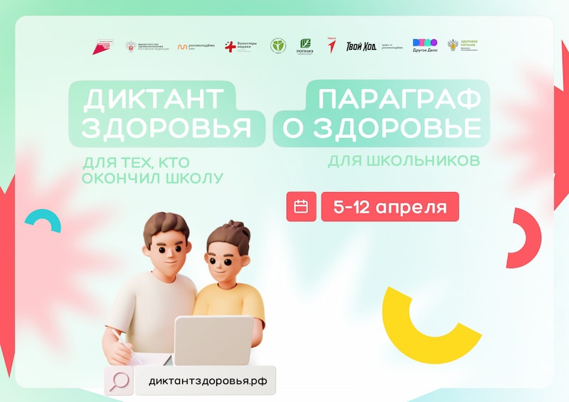 Проверить свои знания о ЗОЖ и диспансеризации можно будет онлайн на платформе диктантздоровья.рф, присоединившись к Всероссийскому диктанту с 5 по 12 апреля. Школьникам предложат ответить на вопросы в разделе «Параграф о здоровье».