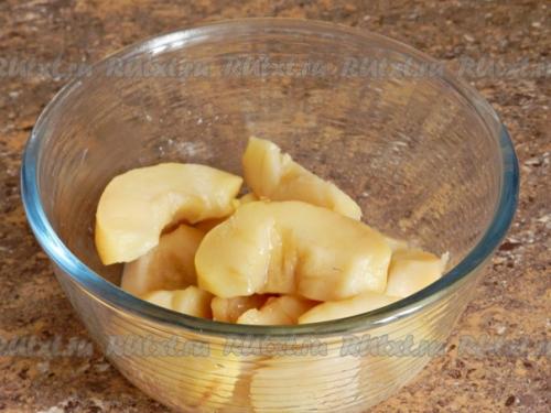 Затем остудить, снять кожицу, удалить сердцевину и нарезать на дольки.
